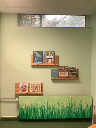 Schülerinnen und Schüler finden nun in der Bücherei ein breites Spektrum von Sachbüchern, Märchen, Jugendbuchklassikern bis hin zu Mangas und Graphic Novels sowie Zeitschriften (GEOlino, DeinSpiegel), sodass hoffentlich alle SchülerInnen mit ihren vielfältigen Interessen angesprochen werden.